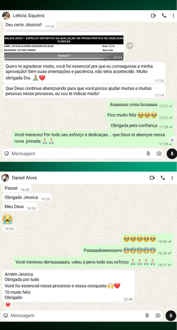 Veja abaixo o que alguns dos Alunos Aprovados com a Dra. Jéssica tem a dizer sobre as Mentorias Individuais do Fórmula!
